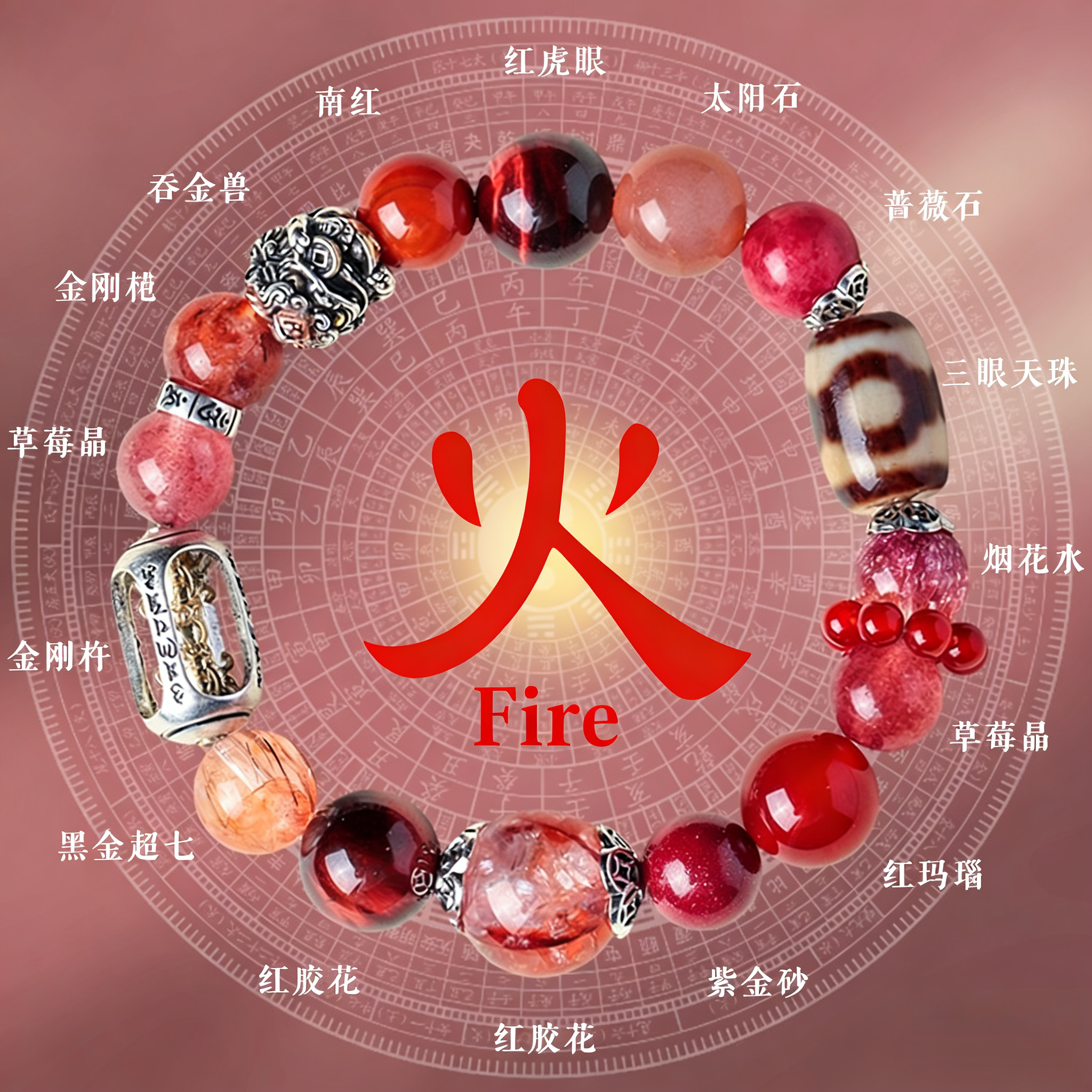 Material: Red Aventurine (Fire), Gold-plated details, Alloy components.